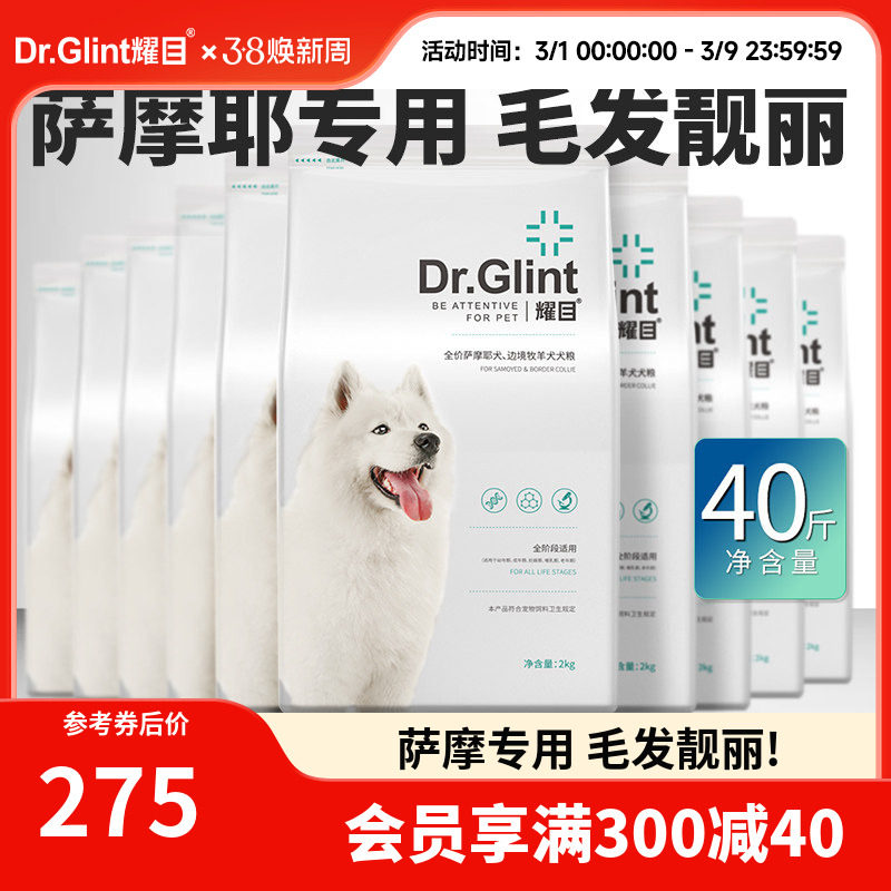 耀目 萨摩耶狗粮幼犬成犬白毛专用宠物粮补钙轻泪痕天然粮20斤