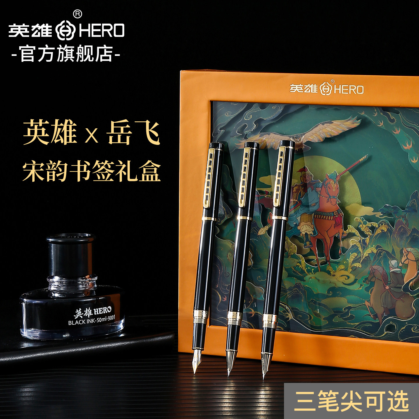 HERO英雄官方旗舰店钢笔300礼盒装12K金笔尖商务书写练字成人男款墨囊墨水钢笔明尖定制刻字送礼品生日礼物