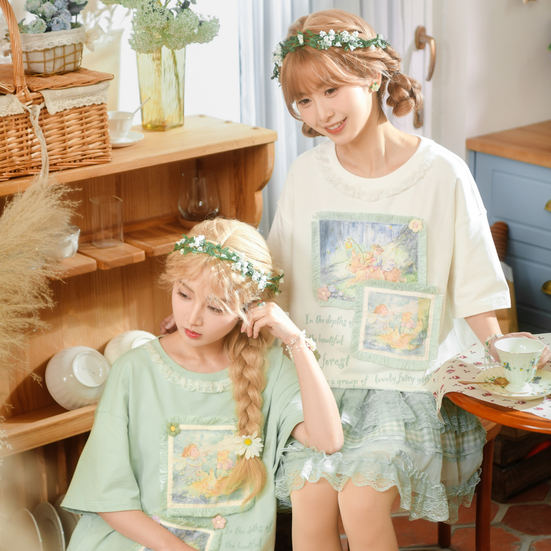 童话森林森女部落原创治愈系插画短袖T恤圆领薄荷曼波上衣夏闺蜜