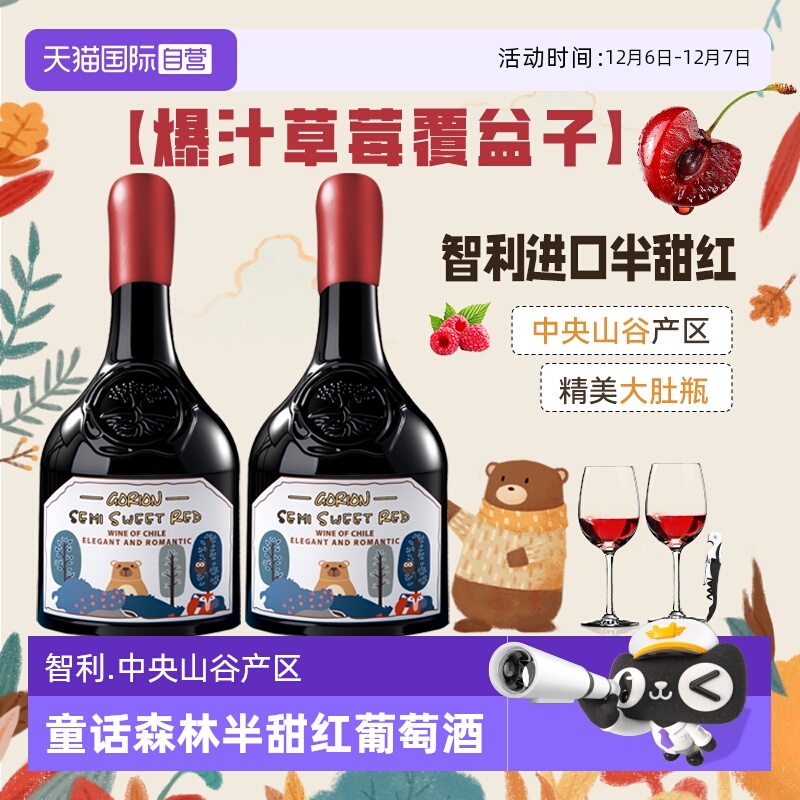 【自营】智利进口童话森林半甜红葡萄酒红酒礼盒装晚安酒送礼正品