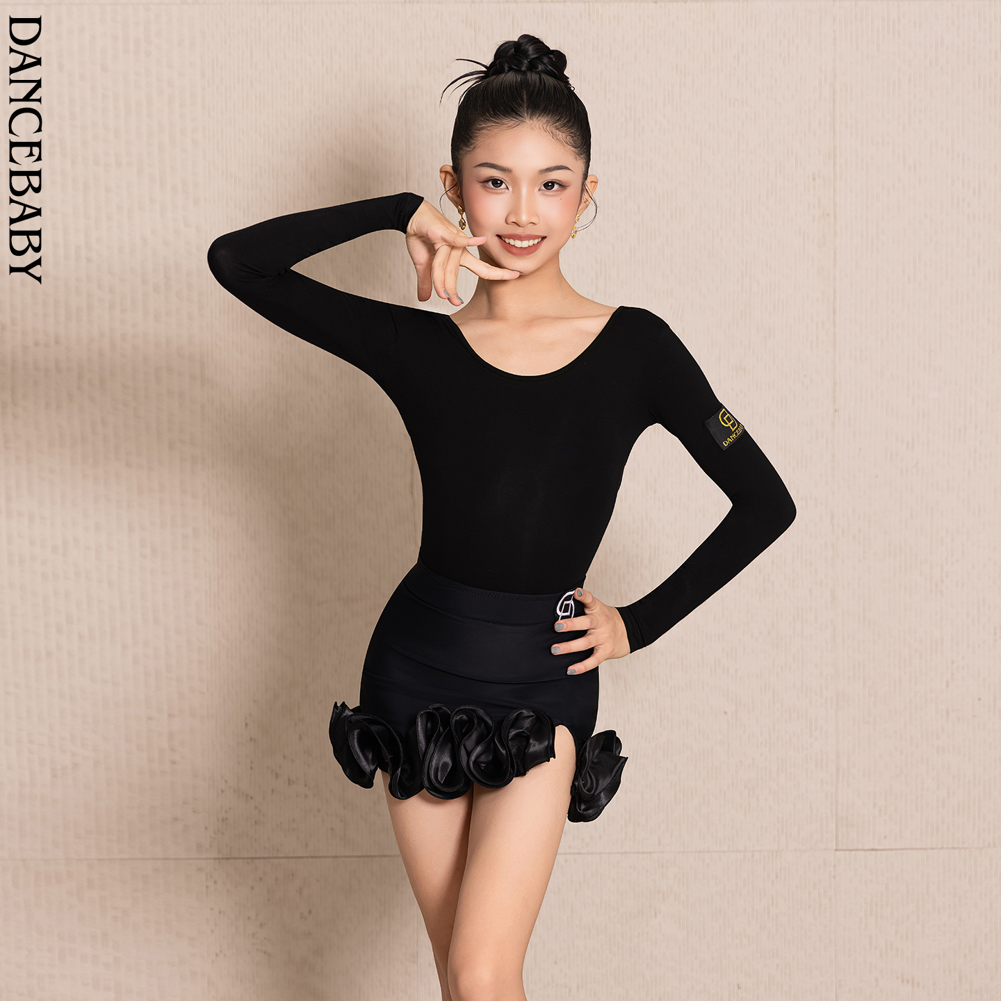 Dancebaby拉丁舞半身裙新款包臀裙百搭女儿童舞蹈高腰裙DAS692