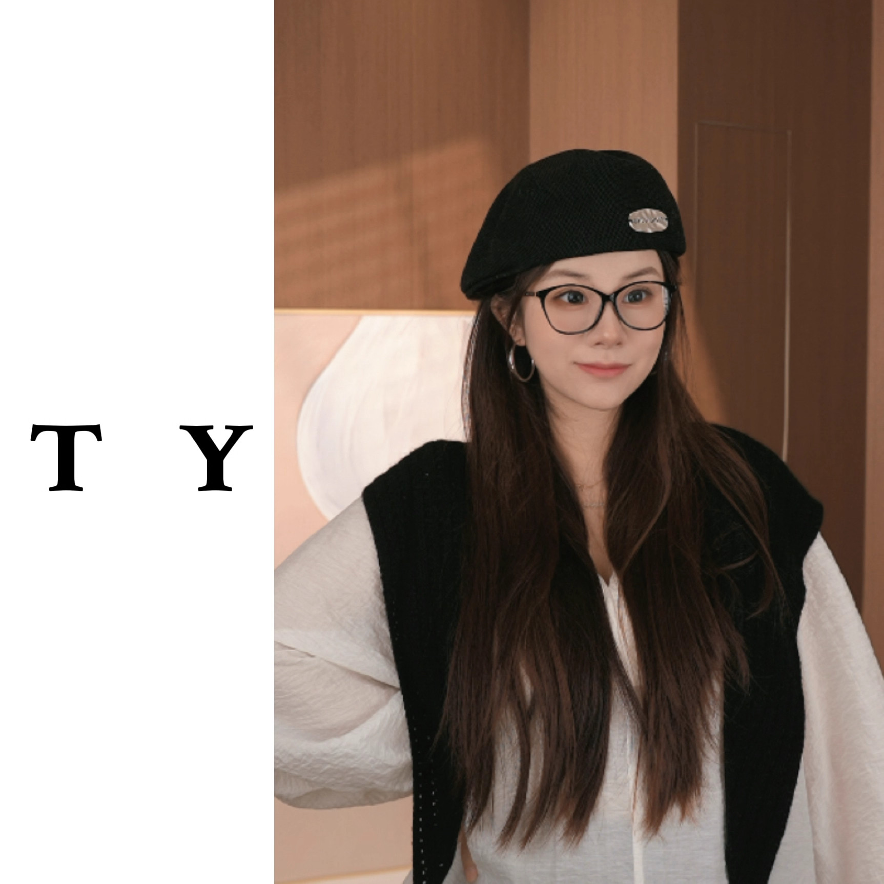 帽子女洋气八角帽贝雷帽2025秋冬女帽时尚女款女士羊毛黑色鸭舌帽