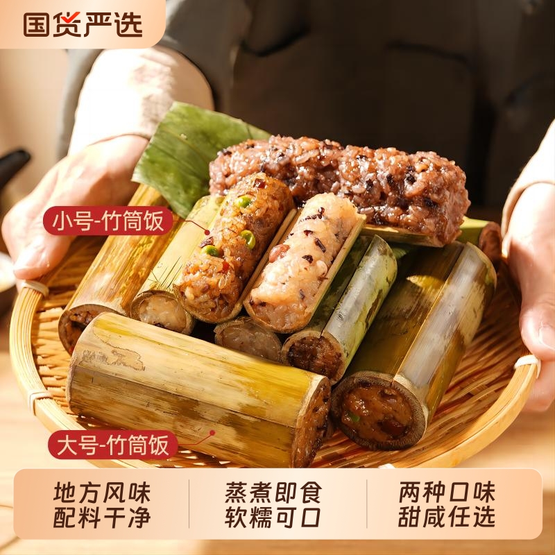 云南西双版纳特产竹筒饭半成品早餐加热速食饭团粽子糯米饭八宝饭