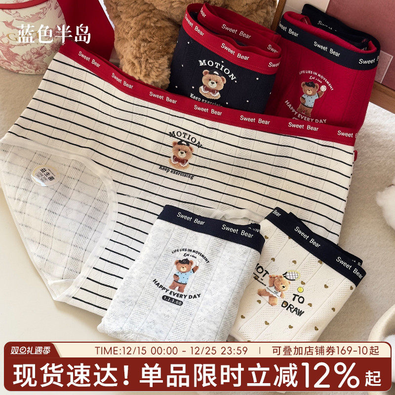 女士短裤2025新款纯棉抗菌裆红色内裤中腰女生三角裤少女可爱亲肤