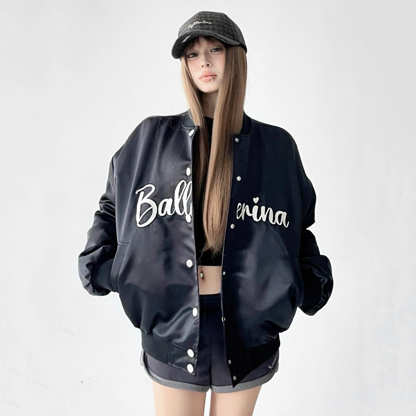 DUSK美式蝴蝶刺绣棒球服外套女春秋冬甜酷韩系穿搭夹克撞色上衣潮