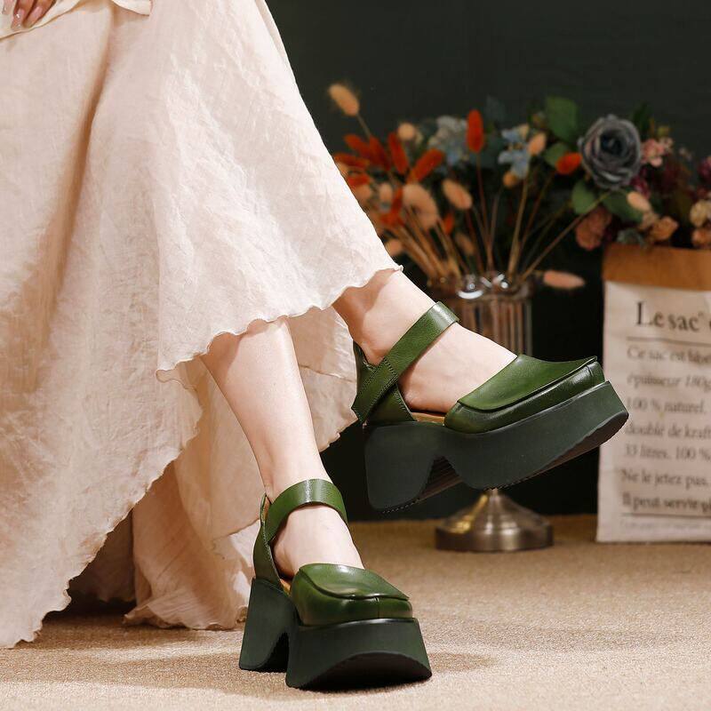 小个子新款真皮厚底鞋女回古原创2026年春款一字带包头复古凉鞋子