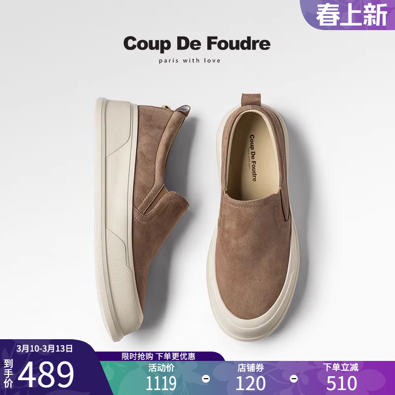 CDF女鞋轻奢时尚秋季百搭真皮厚底鞋一脚蹬舒适简约圆头休闲鞋女