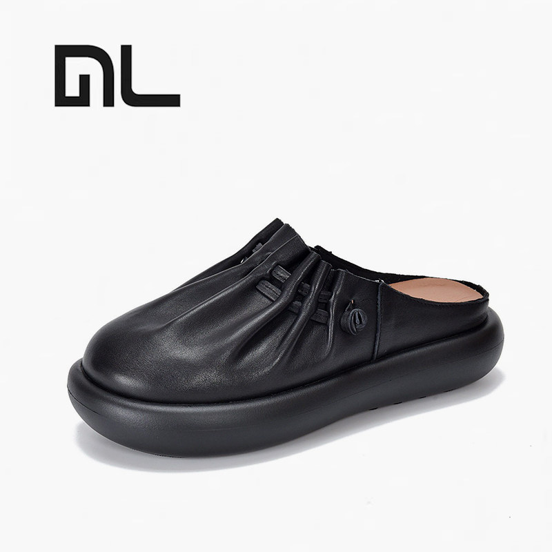 外穿拖鞋女款2026新款春夏头层牛皮复古包头舒适透气真皮厚底鞋拖