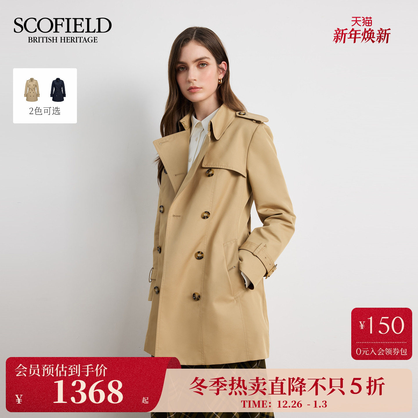 【防泼水】Scofield女装中长款收腰双排扣风衣外套2025秋冬新品