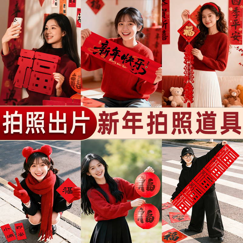 2026新年拍照道具手持对联氛围感拍摄视频拜年贺新春祝福视频儿童