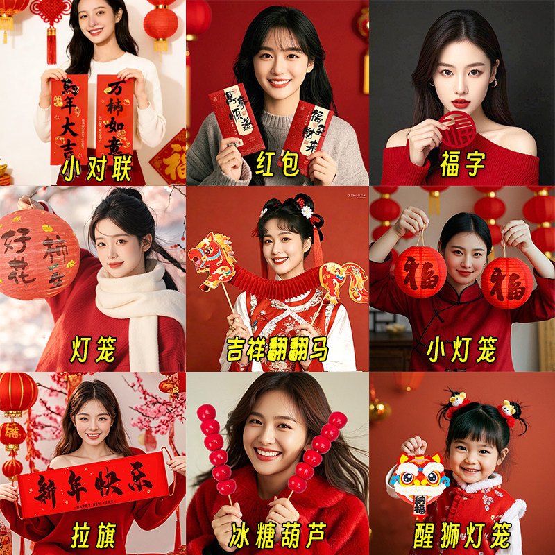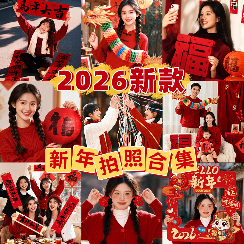 2026新年拍照道具手持春节马年拜年视频拍摄装饰出片背景氛围布置