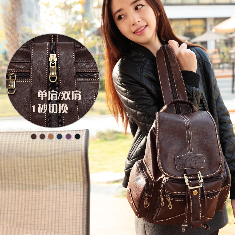 2018新款韩版学院风软皮双肩包女百搭大容量中学生书包旅行背包潮