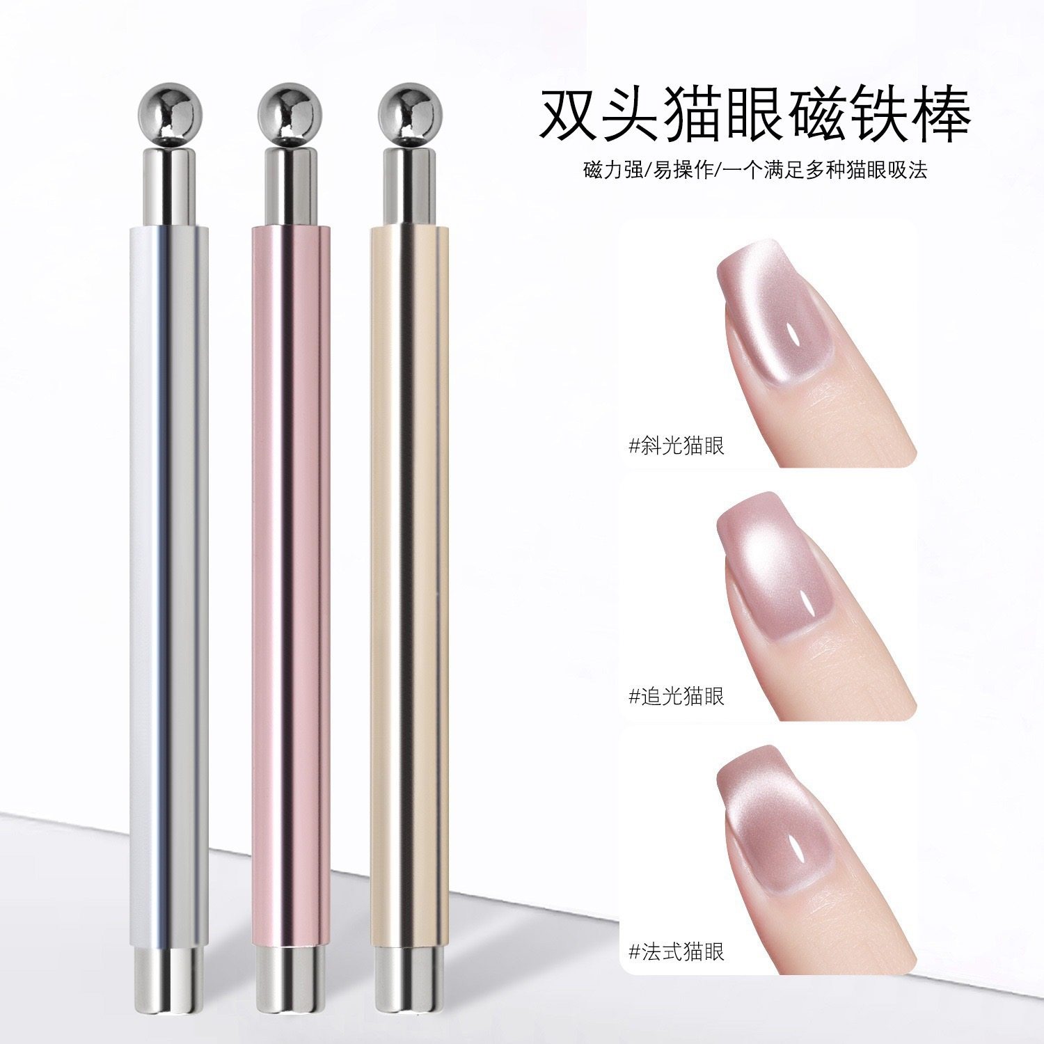 美甲猫眼甲油胶磁铁强磁强力双头吸铁石 渐变色光疗胶猫眼指甲胶