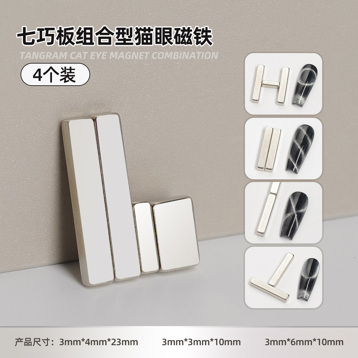 迷你七巧板猫眼甲油胶磁铁套装四件套超强美甲多功能花式黑洞磁铁