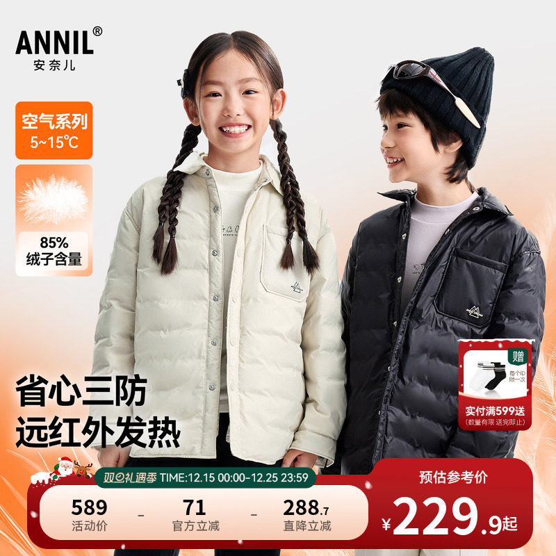安奈儿童装男女童短款羽绒服2025冬新款衬衫式宽松轻薄三防保暖