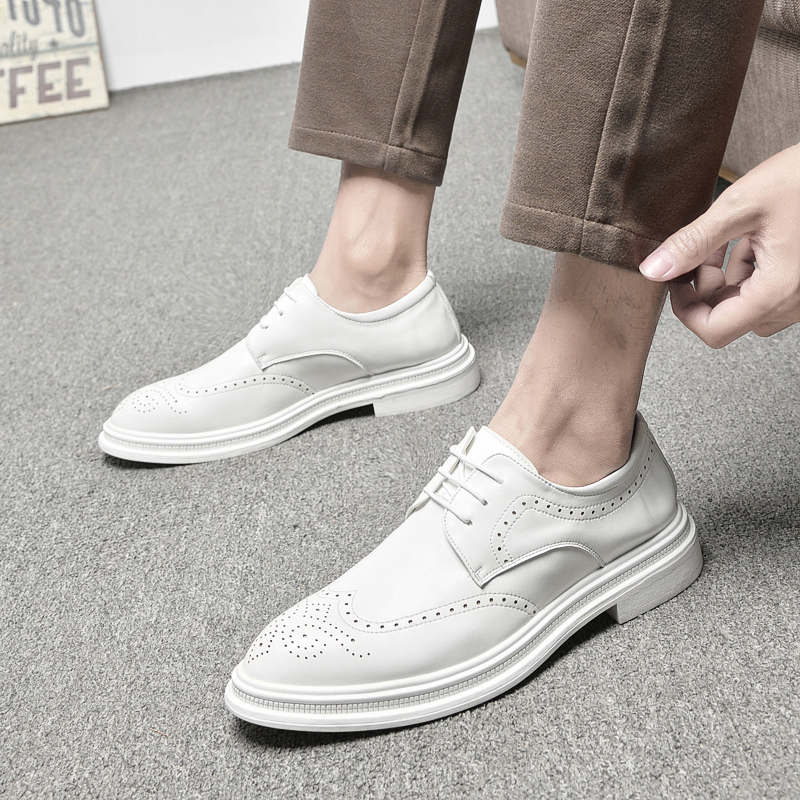 英伦布洛克雕花小皮鞋男士韩版商务正装白色新郎婚礼影楼发型师鞋