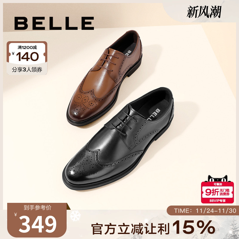 【清仓男鞋】百丽英伦风商务鞋男士牛皮革布洛克雕花通勤正装皮鞋