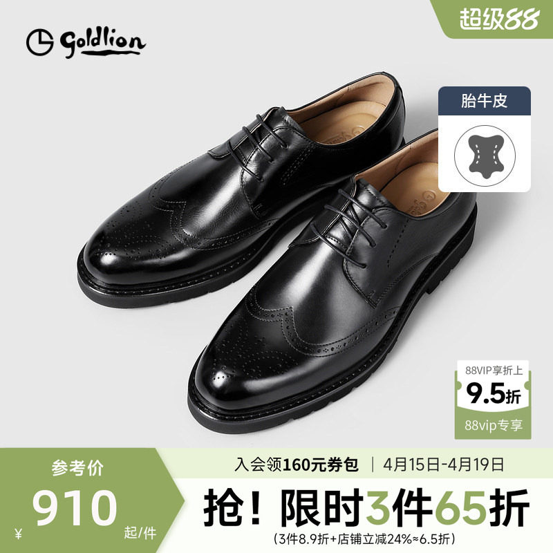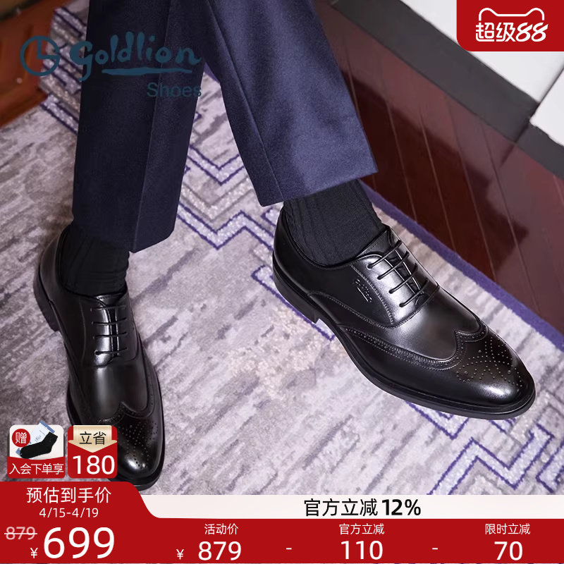 金猴男鞋春秋季新款牛皮商务正装皮鞋英伦风布洛克舒适结婚新郎鞋