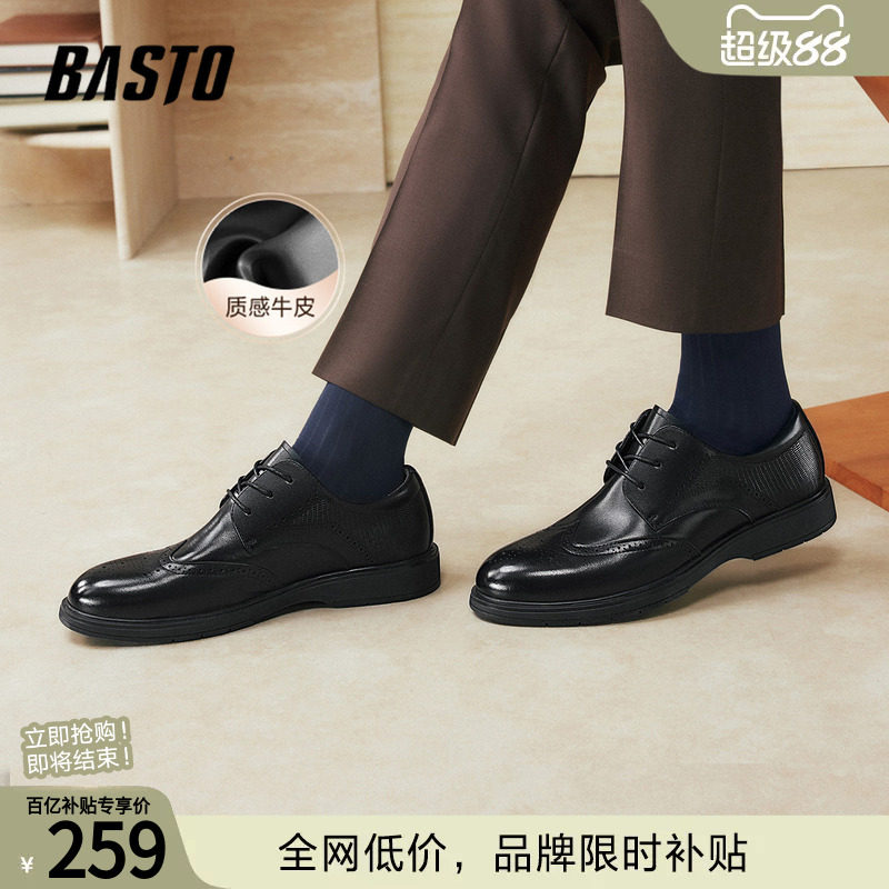百丽男鞋布洛克皮鞋男士正装商务真皮休闲英伦风软底棕色结婚鞋子