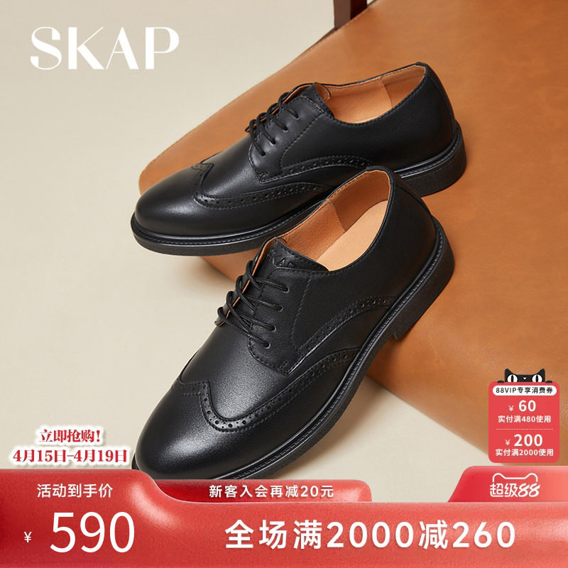 SKAP圣伽步布洛克鞋2026春季新款英伦商务休闲正装婚鞋男士真皮鞋