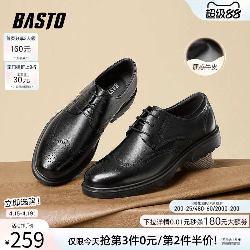 百思图春新款英伦布洛克雕花商务正装皮鞋男婚鞋皮鞋30269AM5