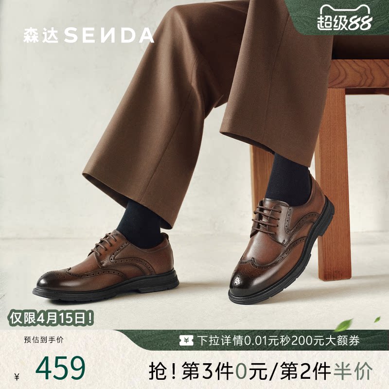 森达正装皮鞋男2026春新商场同款英伦布洛克雕花商务皮鞋2CR01AM6