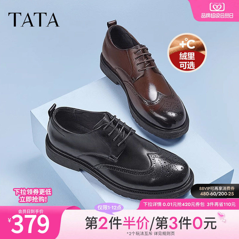 Tata他她雕花布洛克皮鞋男正装商务英伦牛津鞋结婚新郎鞋VZR01AM5