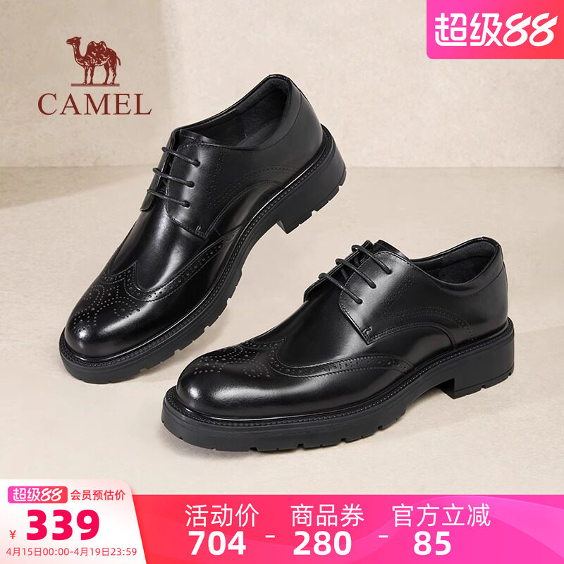 骆驼男鞋2026春季新款牛皮复古德比鞋结婚英伦风布洛克正装皮鞋男