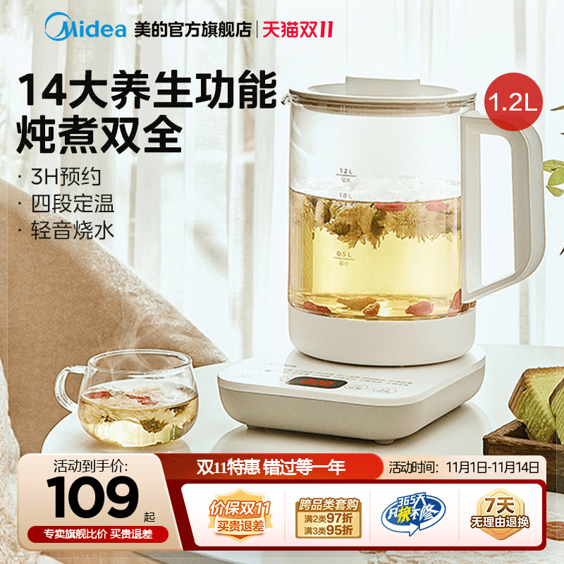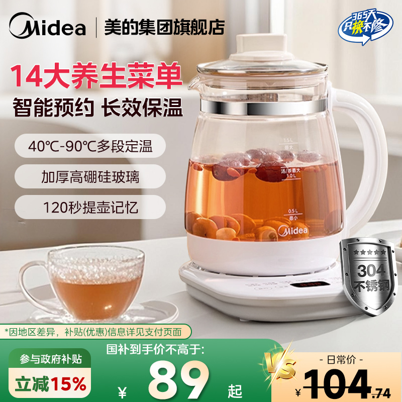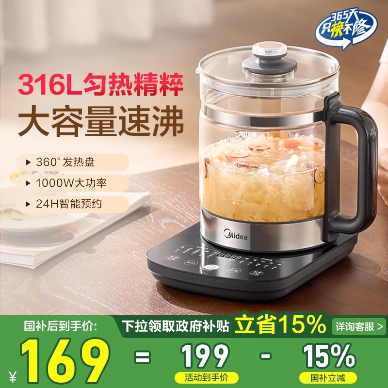 美的养生壶家用玻璃恒温热水壶炖煮一体专用烧水壶正品官方旗舰店