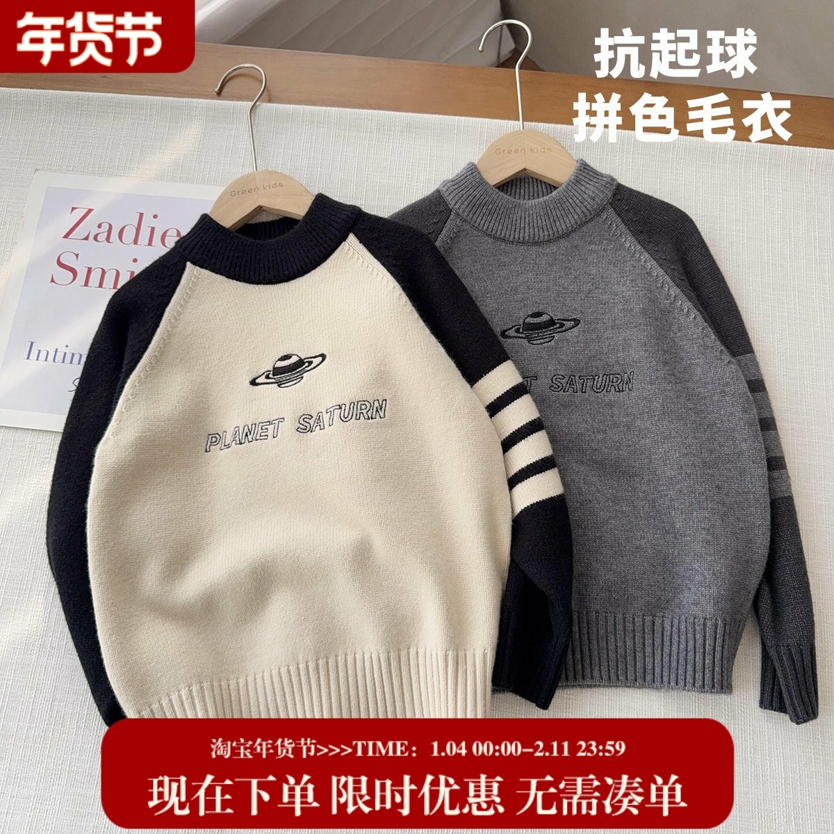 儿童半高领毛衣2024秋冬新款宝宝针织上衣男女童兔绒包芯纱打底衫