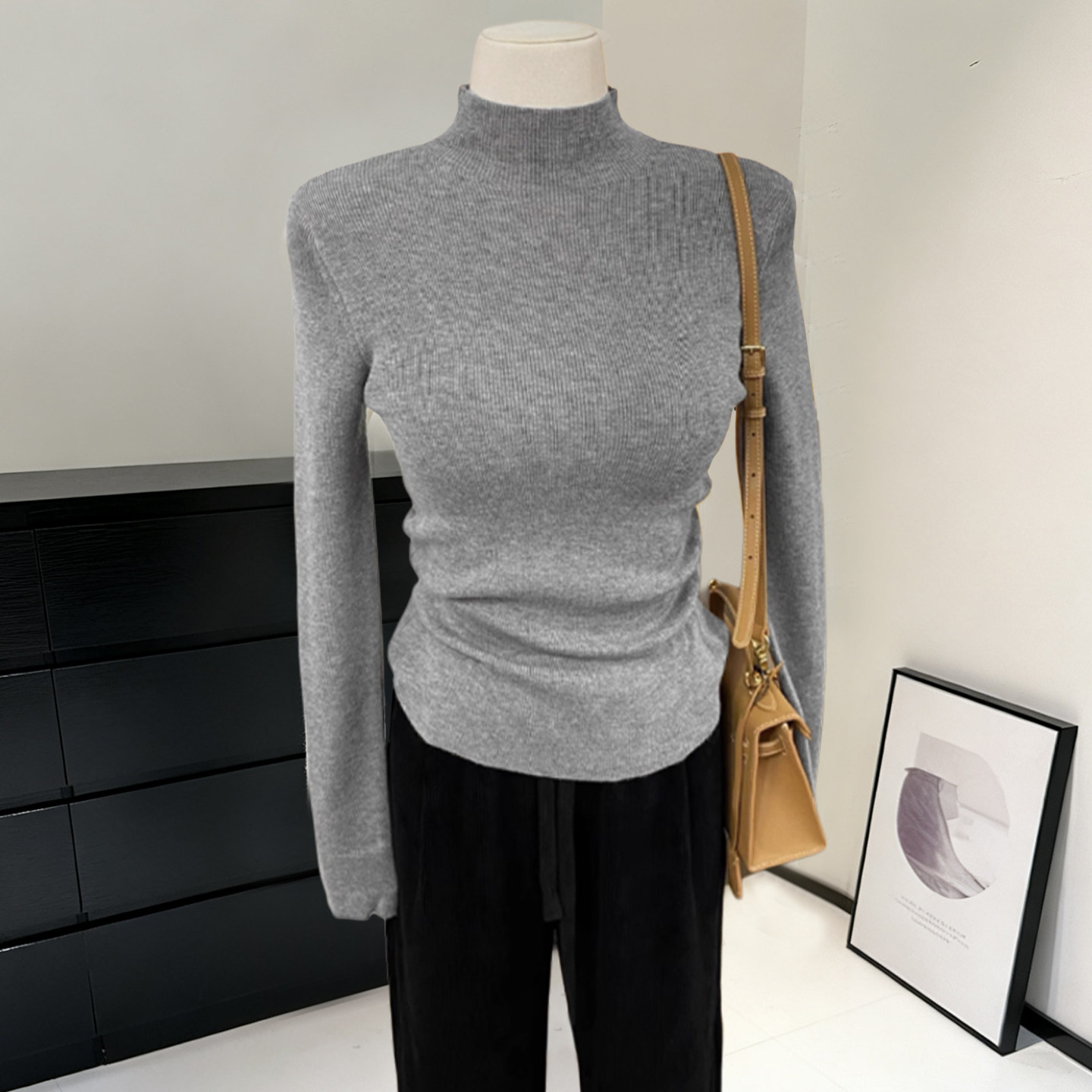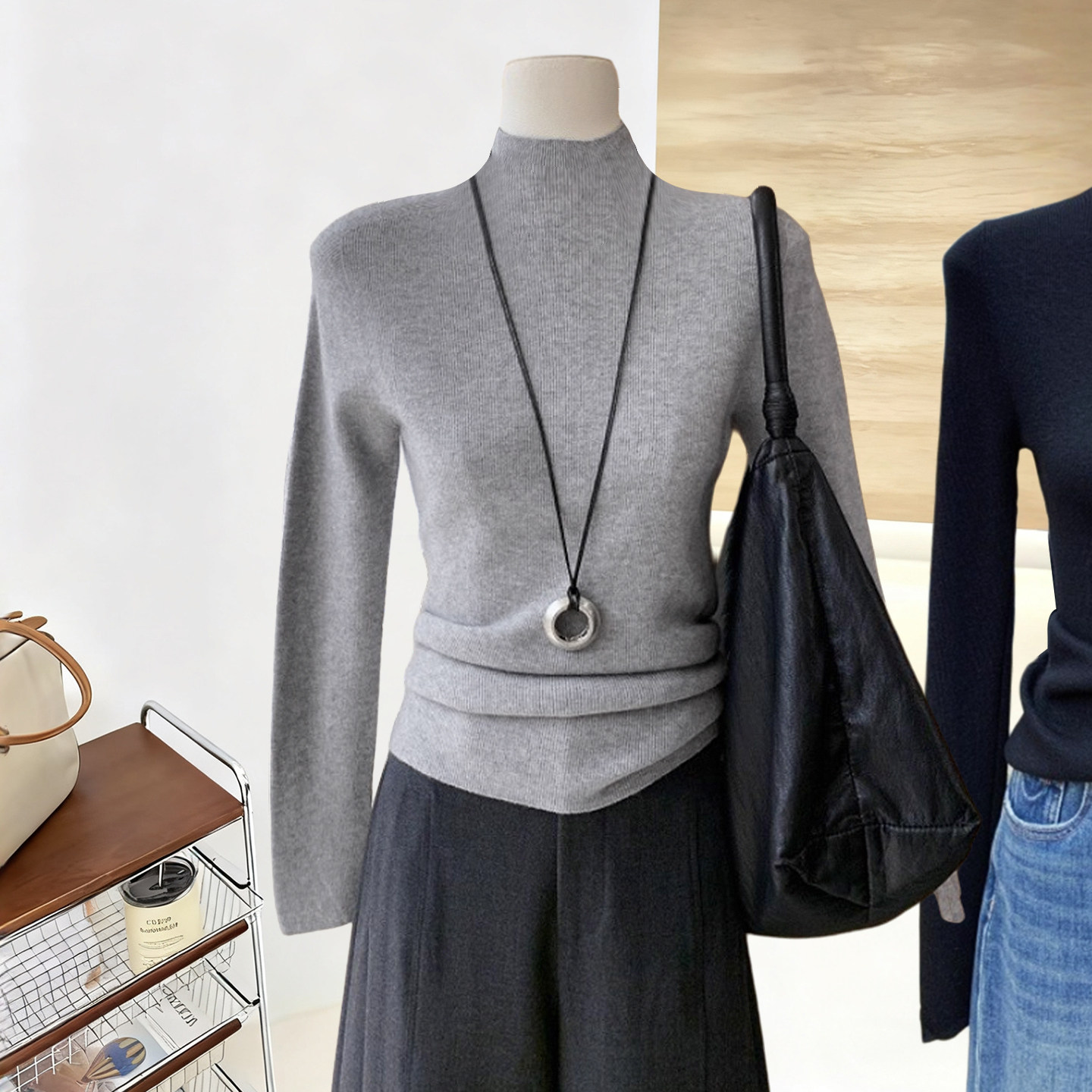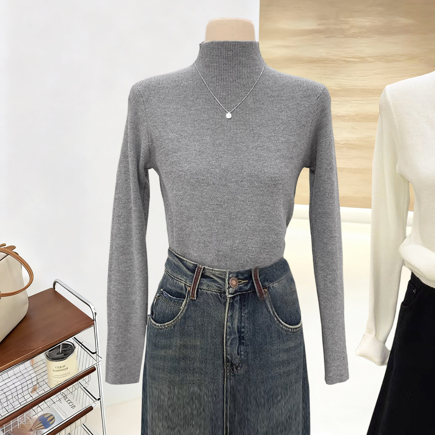 修身气质半高领针织打底衫女款2025新款爆款长袖上衣灰色兔绒毛衣
