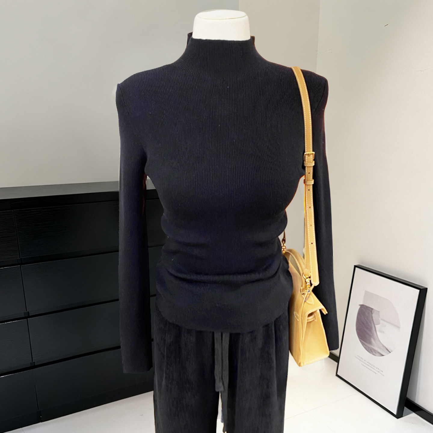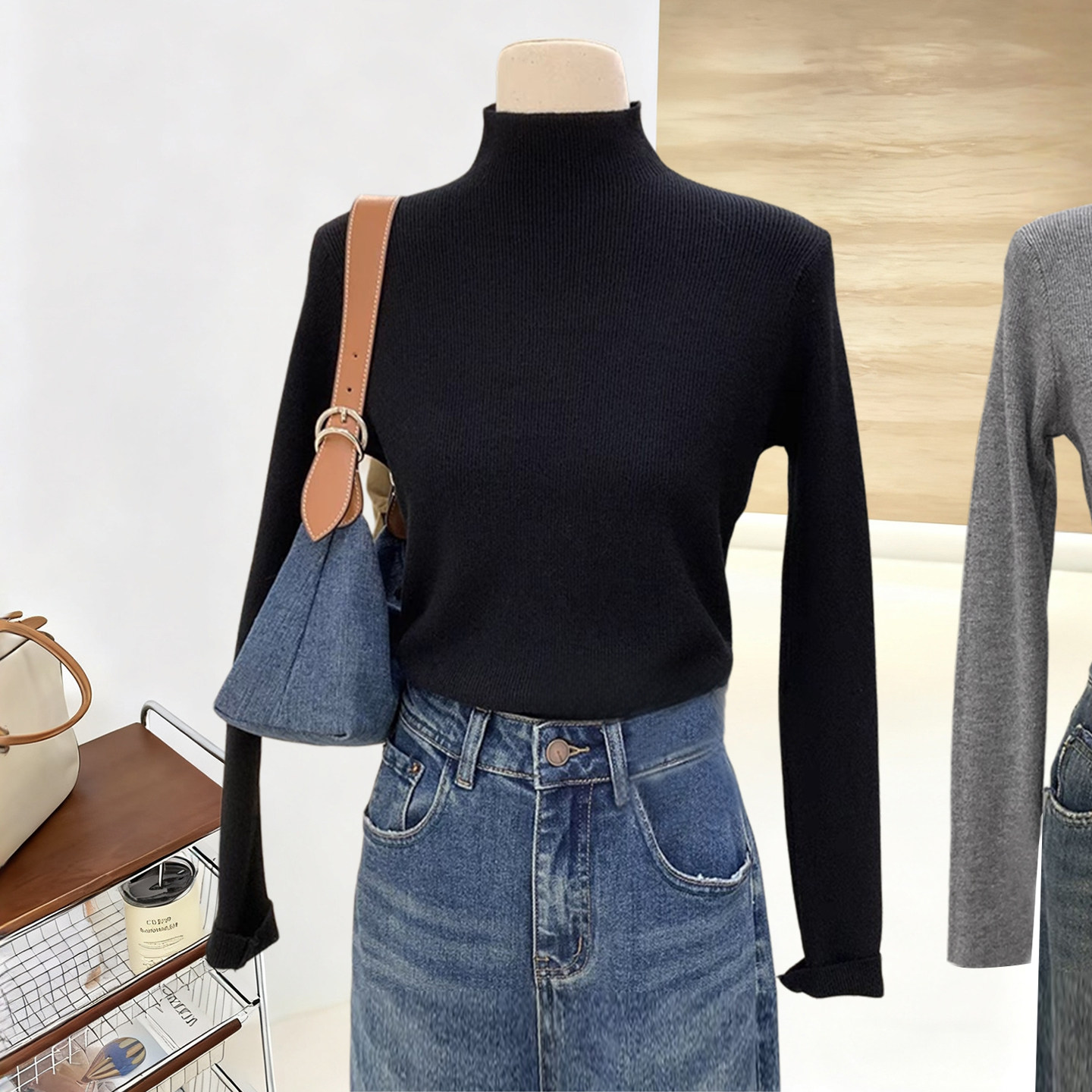 软糯兔绒半高领针织打底衫女秋冬韩版黑色高级感修身上衣显瘦毛衣