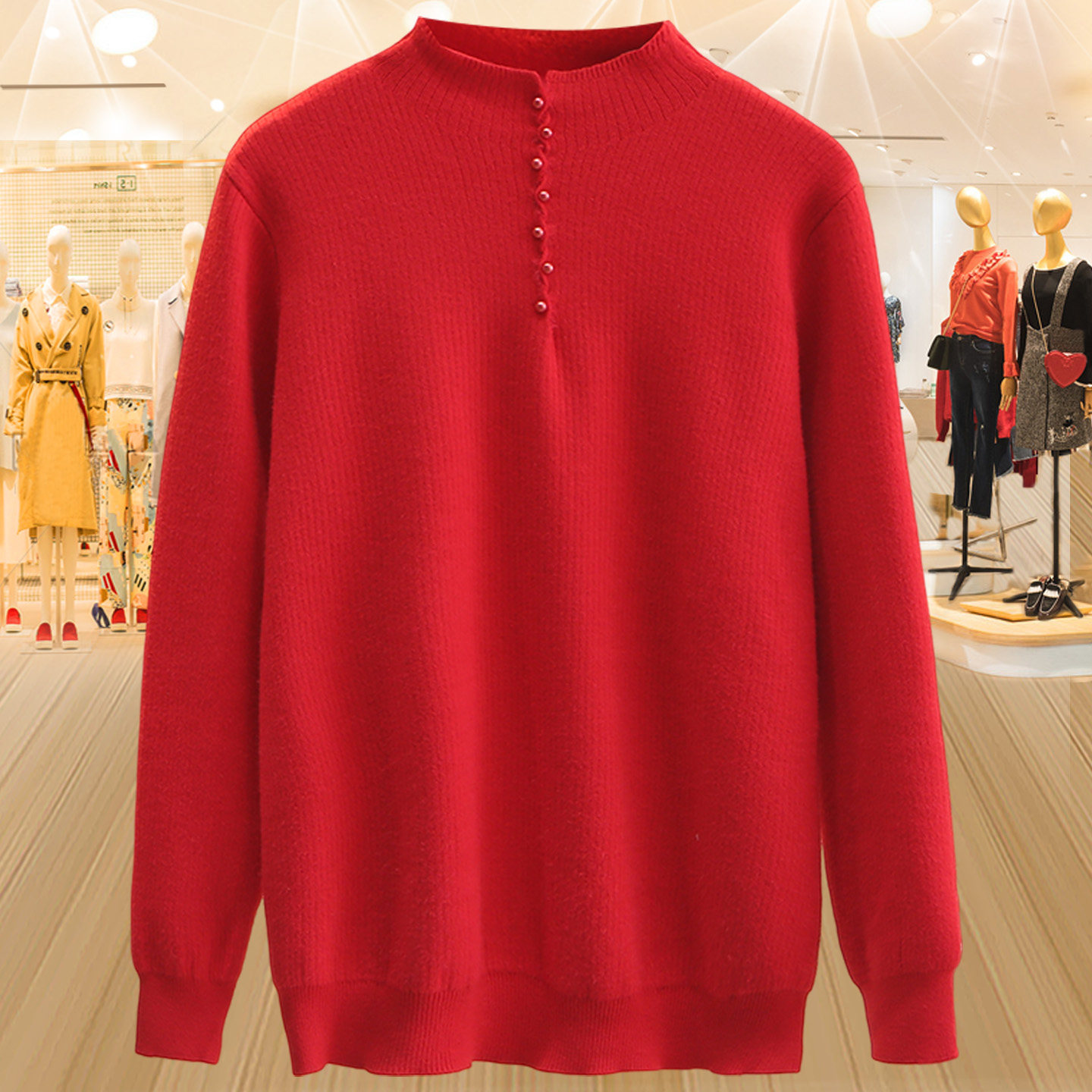 恒源祥半高领毛衣女长款针织衫宽松无羊绒线衫套头兔绒打底针织衫