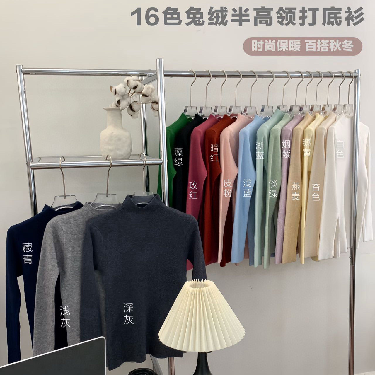 eggsmile16色兔绒半高领打底衫女秋冬内搭毛衣纯色修身显瘦百搭