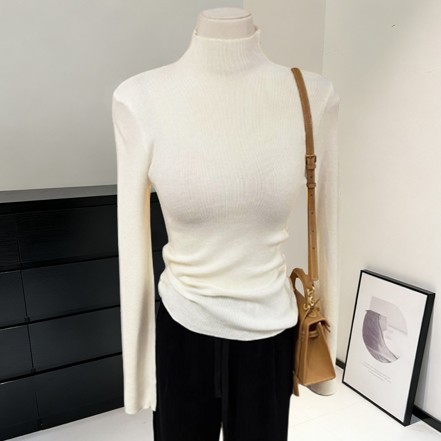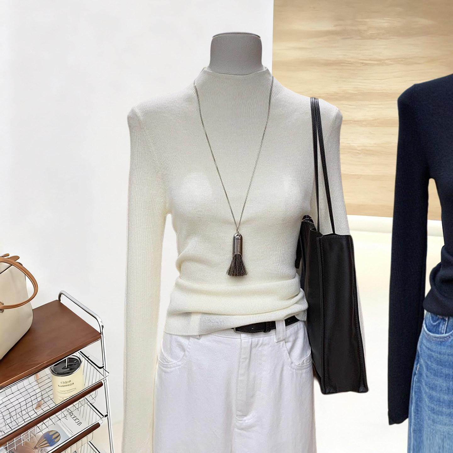 杏色基础款半高领针织打底衫女2025新款修身上衣韩版兔绒内搭毛衣
