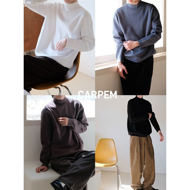 可乐生活自制 秋冬兔绒半高领基础纯色长袖针织衫打底套头毛衣男
