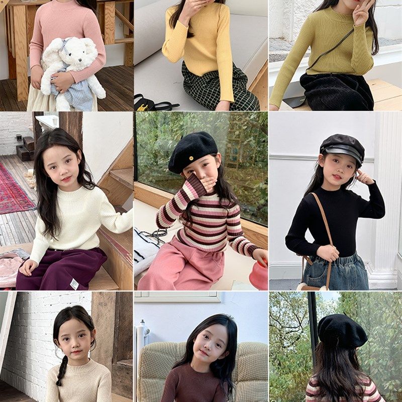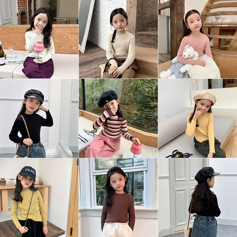 女童高弹兔绒包芯纱软糯半高领套头针织衫儿童宝宝秋冬打底衫毛衣