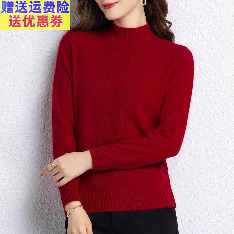 恒源祥兔毛衫羊毛针织衫女士秋冬打底衫套头獭兔绒半高领纯色毛衣