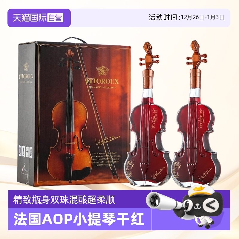 【自营】法国进口红酒15度AOP小提琴干红葡萄酒西拉正品2支礼盒装