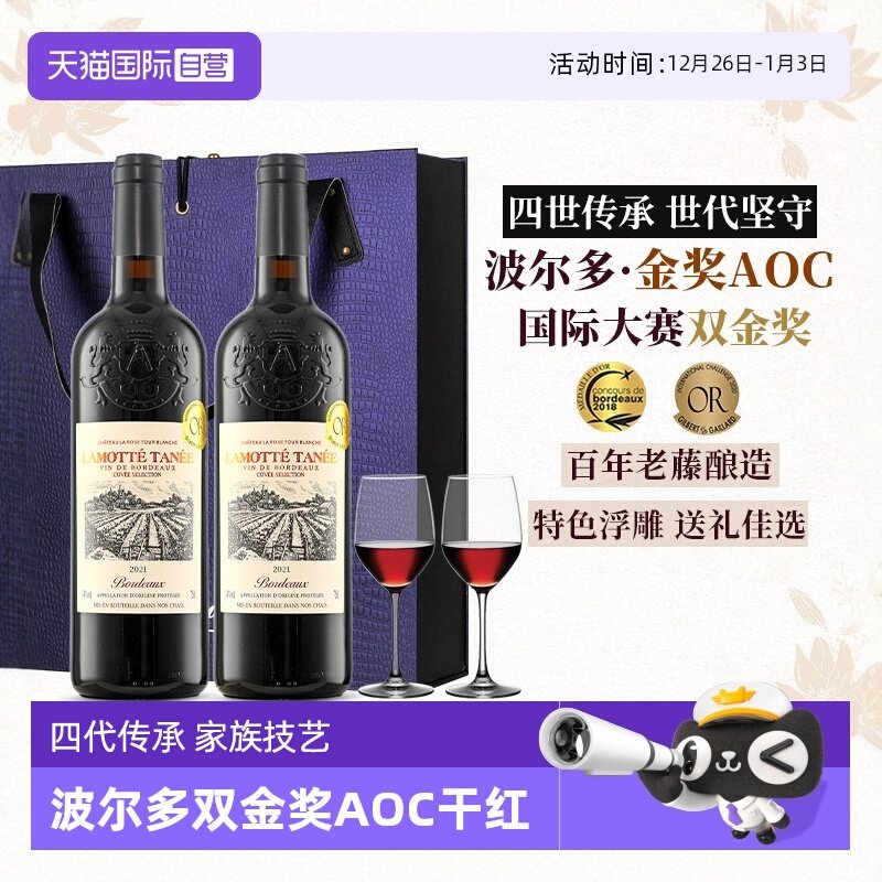【自营】波尔多大赛金奖 法国进口红酒AOC葡萄酒干红整箱礼盒装