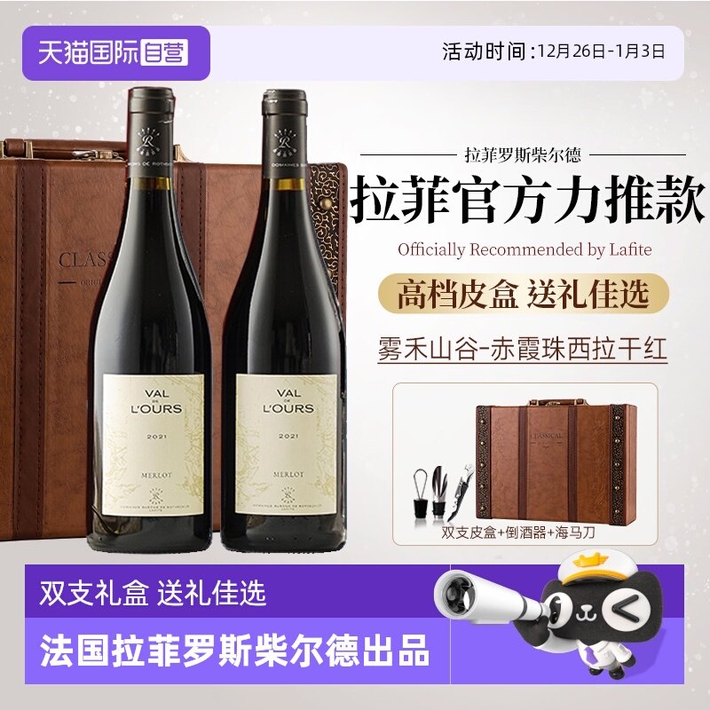 法国进口红酒礼盒双支装2瓶西华拉菲酒庄干红葡萄酒送礼佳品套装