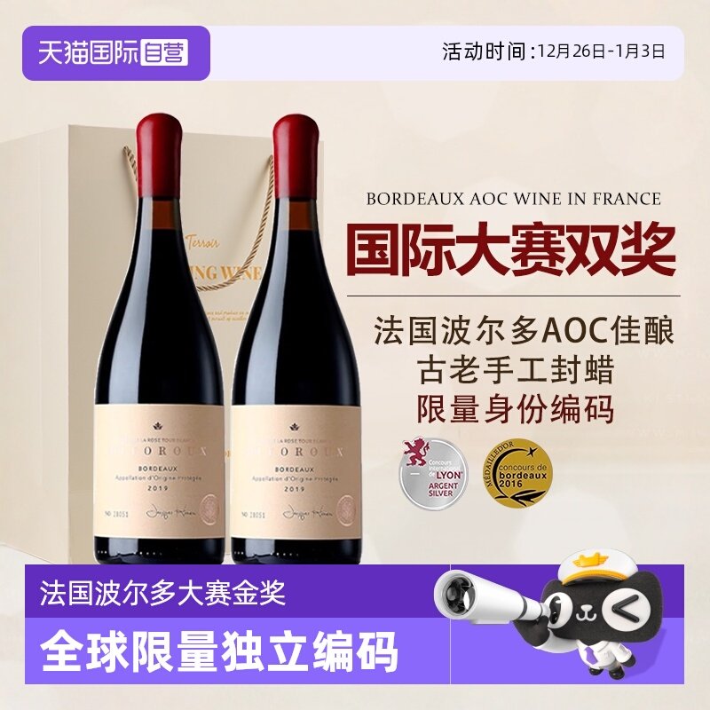 法国进口红酒赤霞珠AOP级干红葡萄酒双支旗舰店官方正品中秋送礼