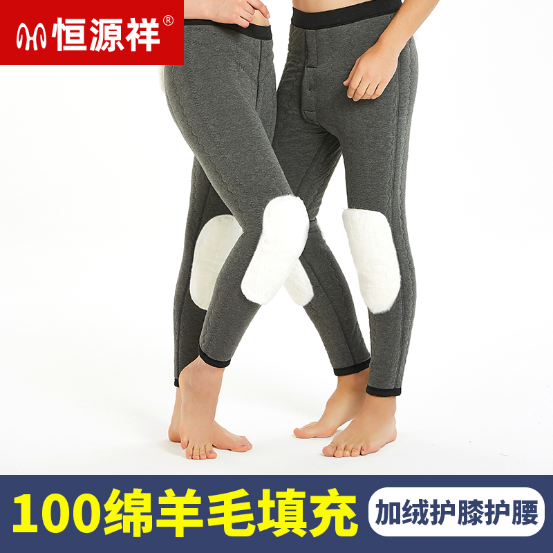 恒源祥羊毛保暖裤男女獭兔毛护膝冬季加绒加厚中老年东北巨厚衬裤
