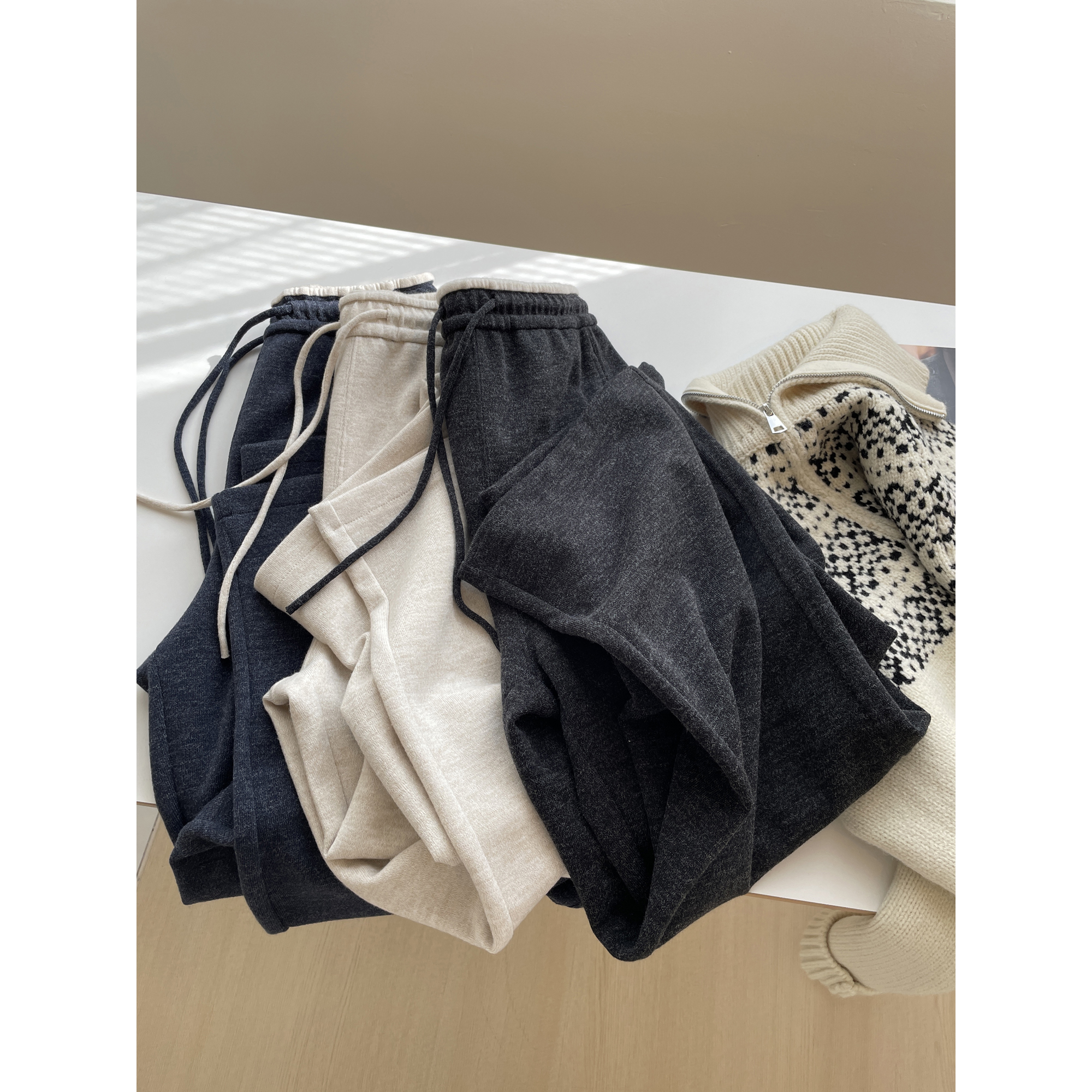 老钱风垂感直筒裤!秋冬温柔舒适松紧腰仿兔毛绒感直筒休闲阔腿裤