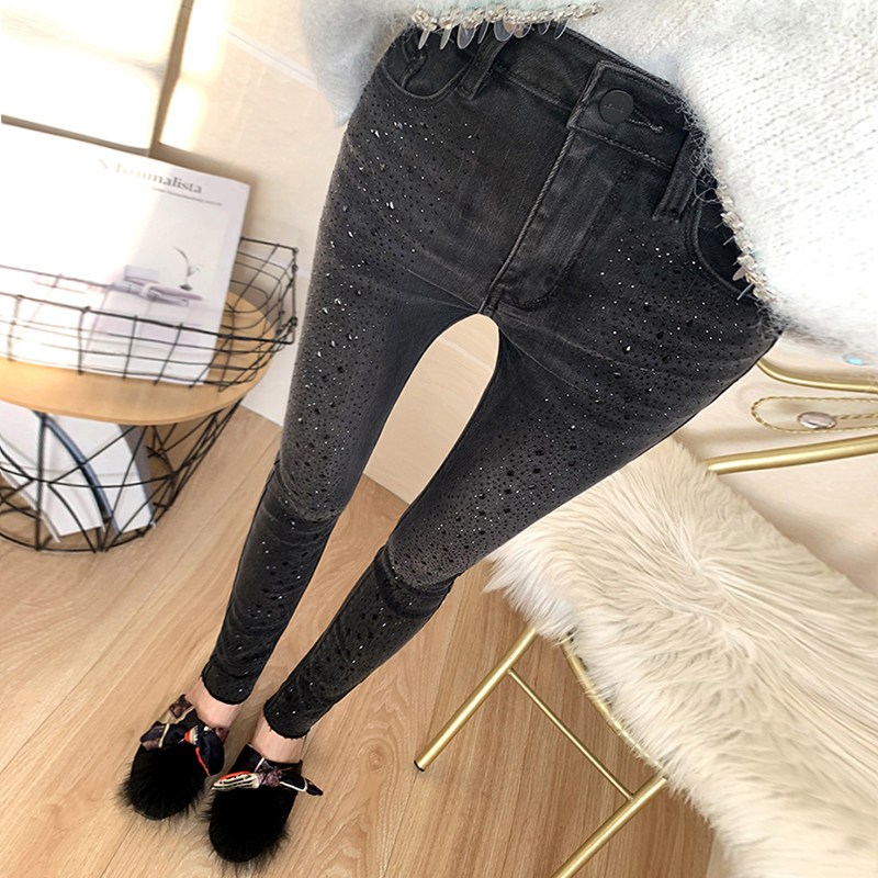 洋气黑灰色重工烫钻小脚牛仔裤女显瘦长裤2025春秋新品高腰铅笔裤