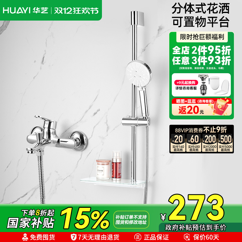 华艺卫浴简易淋浴花洒套装家用精铜卫生间无顶喷淋雨浴室沐浴套装
