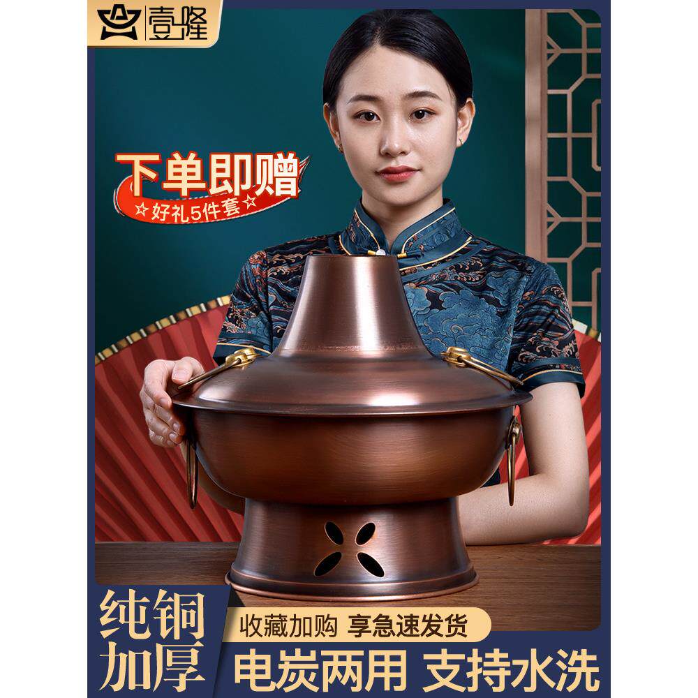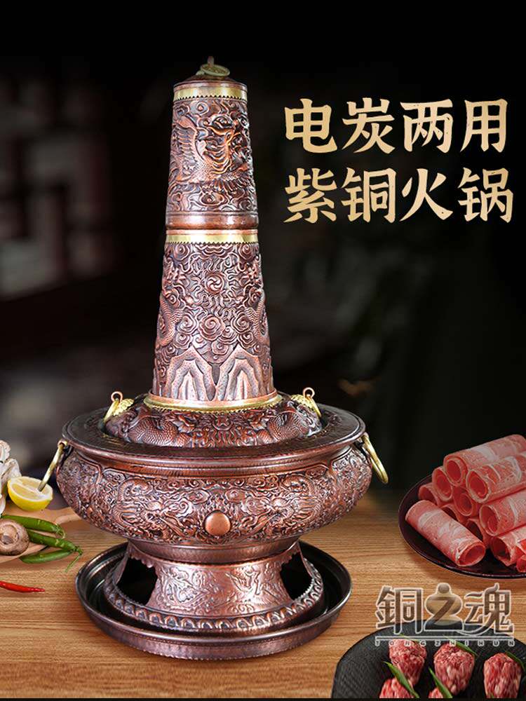 电炭碳两用纯紫铜火锅插电智能传统木炭老北京炊暧锅手工加厚家用