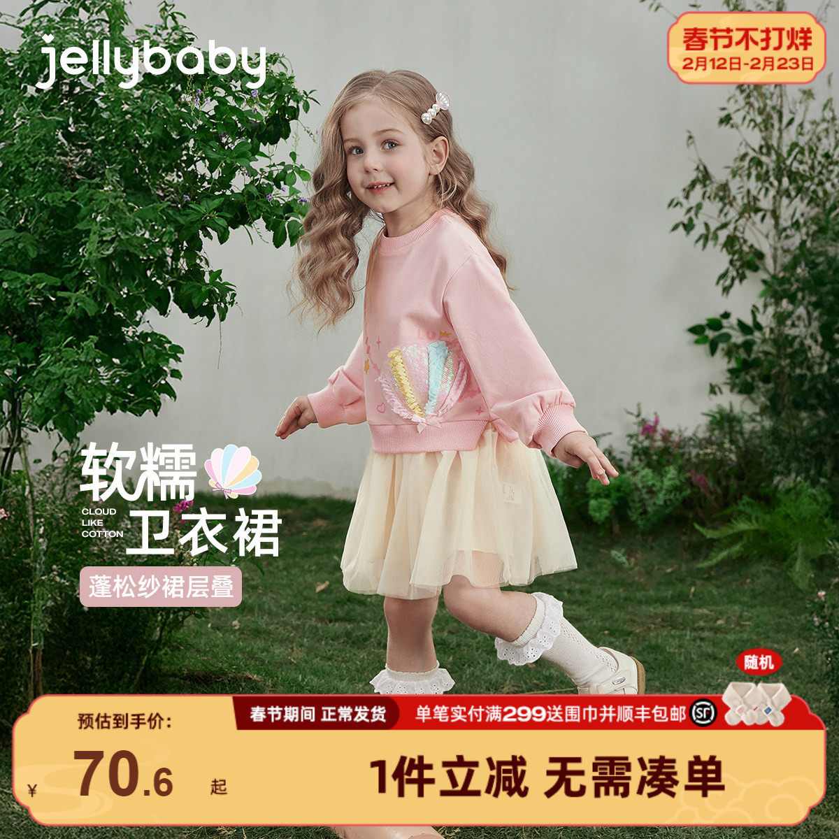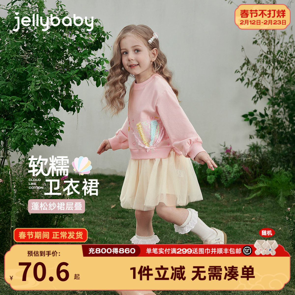 [7A抑菌]女童连衣裙春季儿童圆领卫衣裙假两件拼接纱裙女宝宝裙子