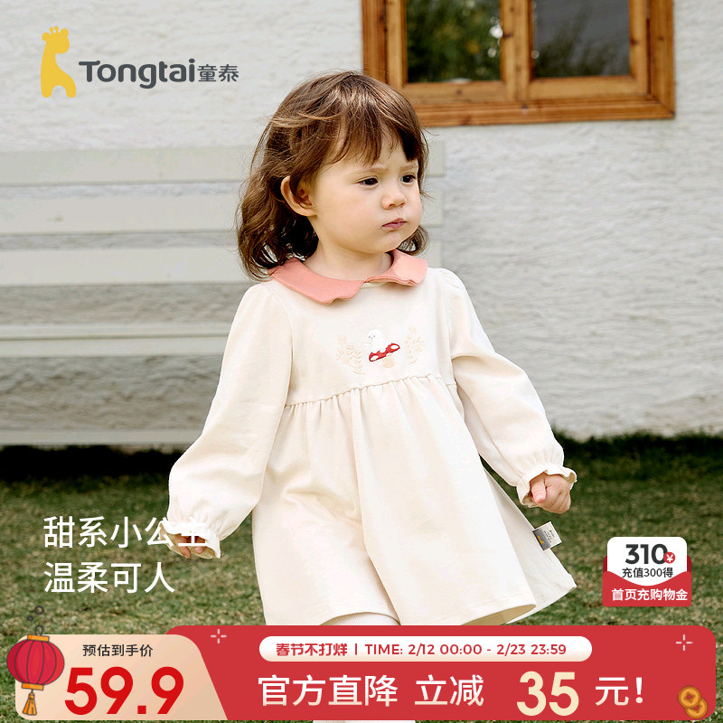 童泰婴儿连衣裙春秋纯棉女宝宝裙子儿童翻领蓬蓬裙女童外出公主裙