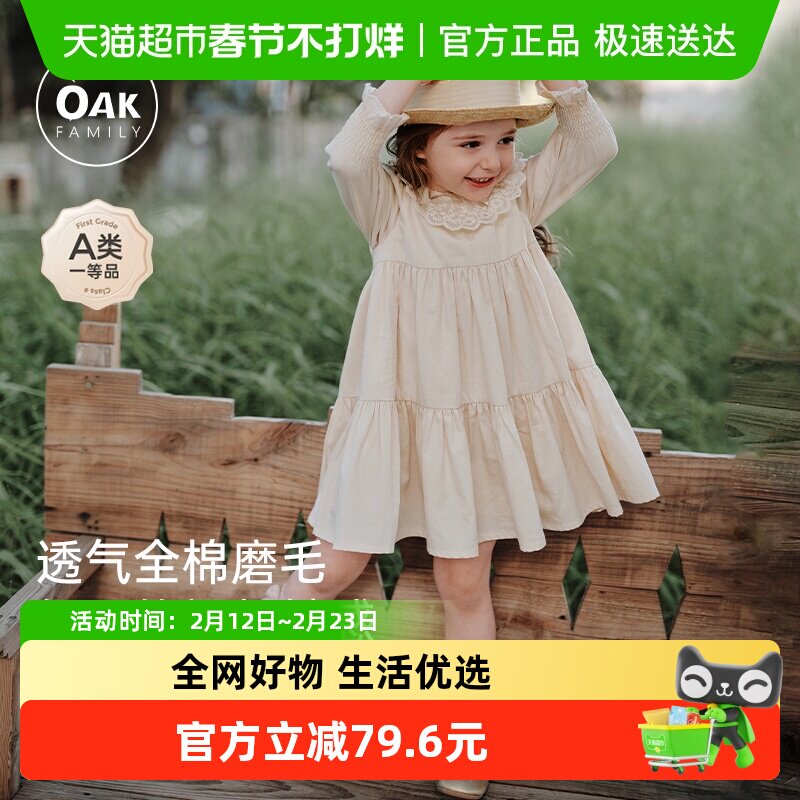 Oak Family秋季儿童长袖连衣裙女童全棉轻绒女宝宝裙翻领公主裙